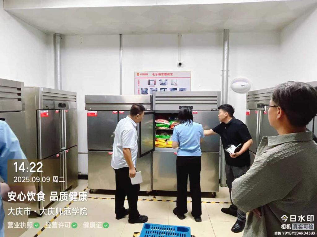 检查组通过“查制度、看现场、核台账”相结合的方式,重点围绕学校食堂“日管控、周排查、月调度”工作制度落实情况、大宗食材采购管理、膳食经费使用管理、食品安全包保责任落实情况、食堂员工服务培训记录以及食堂满意度调查等方面进行了全面督导检查。检查组还深入食堂操作间、储物区等一线区域,对干调标签标识、原料分类存放、食品留样规范性等关键环节进行了细致检查。